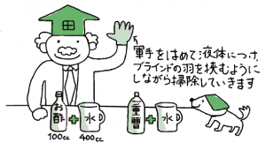ブラインド表面のホコリをとったら、お酢を使って最後の仕上げをします。
