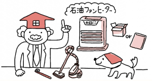 お手入れが終わった石油ファンヒーターは購入時の箱に入れる、もしくは大きなビニール袋で包み、直射日光が当たらない風通しのいい場所に保管してください。