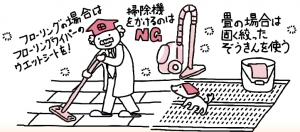 水拭き掃除を駆使して、撒き散らさないお掃除を