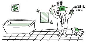 ※このお掃除方法は、くもり止め加工がされた鏡には使えません。事前にチェックしてから行ってください。