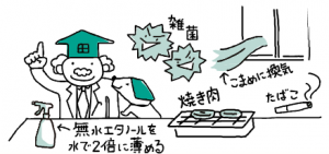 雨で窓が開けられない場合は、無水エタノールを水で2倍に薄めたものをスプレーするのがおすすめ。