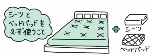 シーツとベッドパッドを必ず使うこと