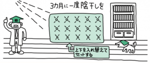 3カ月に一度は陰干しを行い、 マットレスにたまった湿気を取り除いてください。