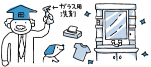洗剤を鏡に吹き付けるときは、周囲に飛び散らないよう注意してくださいね。