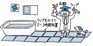 まずはお風呂の床の水気を取って、しっかりと乾かしておきましょう。